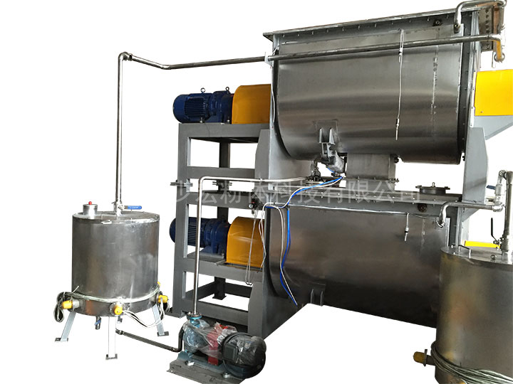 6、加液霧化裝置:可對不同粘稠度的液體物料進(jìn)行霧化,使加入液體物料混合均勻(噴灑狀)。